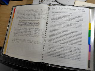 今までに翻訳したものを印刷してみると、内容が良く頭に入り、間違いが見つけやすい印象があります。 やはり視覚的な違いはあると思いました。そこで今まで使っていたB5サイズをやめ、A4バインダーで保管することにしました。A4用紙だと両面印刷ができて仕事が早いのです。30穴をとりあえず購入したのですが、ルーズリーフの形状をみると4穴でも大丈夫そうなので今度からはそのタイプにします。